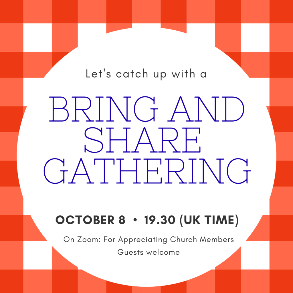Pot Luck/Faith Supper/Jacob’s Joint?! It’s that event where you’re encouraged to turn up with something tasty so that everyone can enjoy your signature dish. Whatever it’s called in your neighbourhood – you’re invited! Wednesday 8th October, 19.30 – 20.30 (BST)
